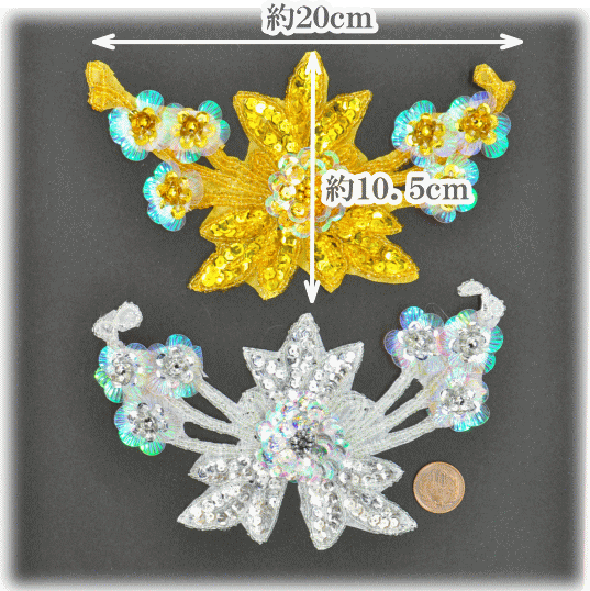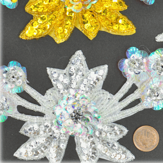 スパンコールモチーフワッペン ゴールド・シルバー 《 衣装 材料 スパン モチーフ ワッペン コスチューム バトン ダンス 新体操 ビーズ キラキラ チア ポイント 手作り 手芸 ハンドメイド 》