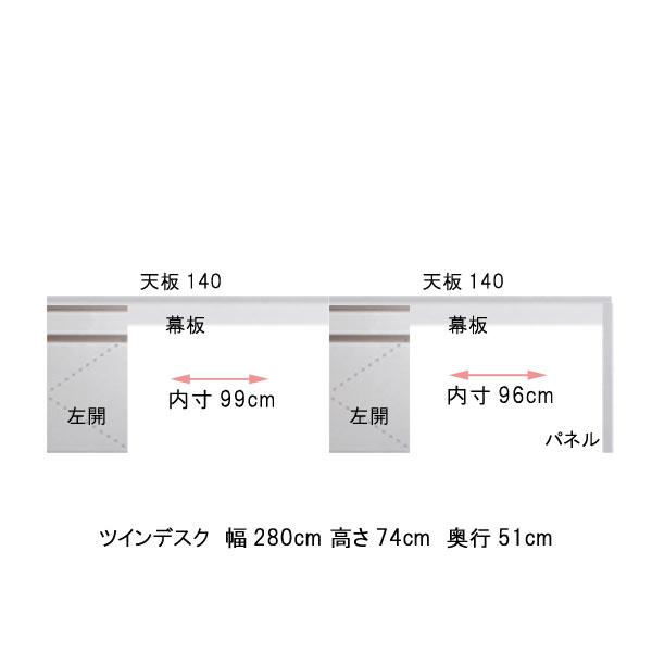 ツインデスク 幅280 奥行51 高さ74cm ブラウンBR ホワイトWH PCデスク 机 PC机 パソコンデスク パソコン机 日本製 国産 オフィステーブル オフィス机 オフィスデスク つくえ ツクエ 北欧 モダン 書斎机 書斎用 事務所 会議室 送料無料【QSM-50K】【2D】