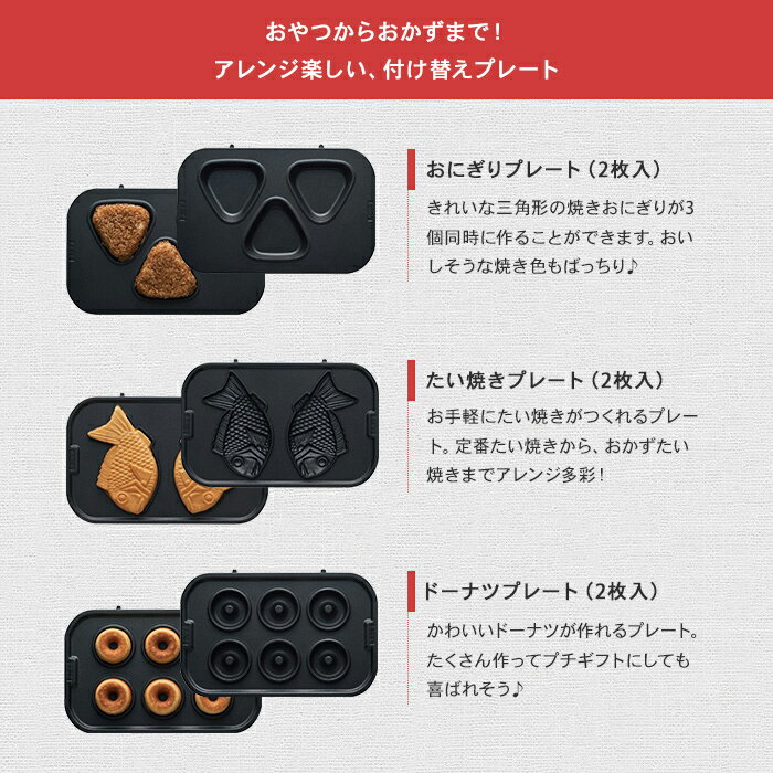 おにぎり、たい焼き、ドーナツと3つのプレートをご用意、それぞれにオリジナルレシピが付いています。
